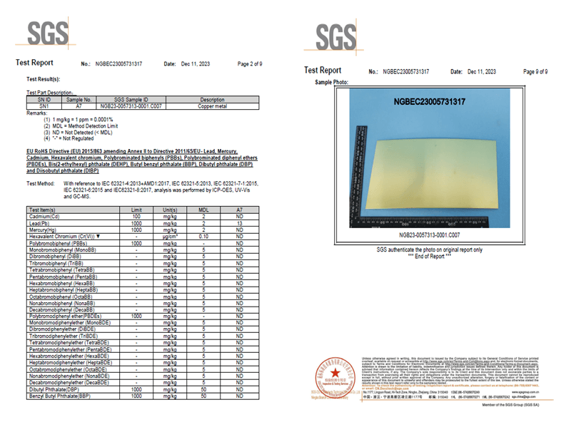 INT Certificate-TEST-ROHS- BRASS