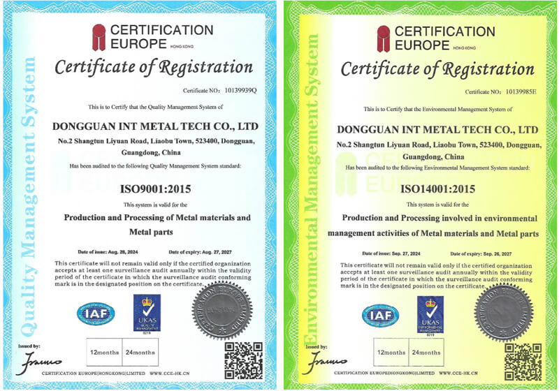 ໃບຢັ້ງຢືນ INT- ISO9001 & ISO14001